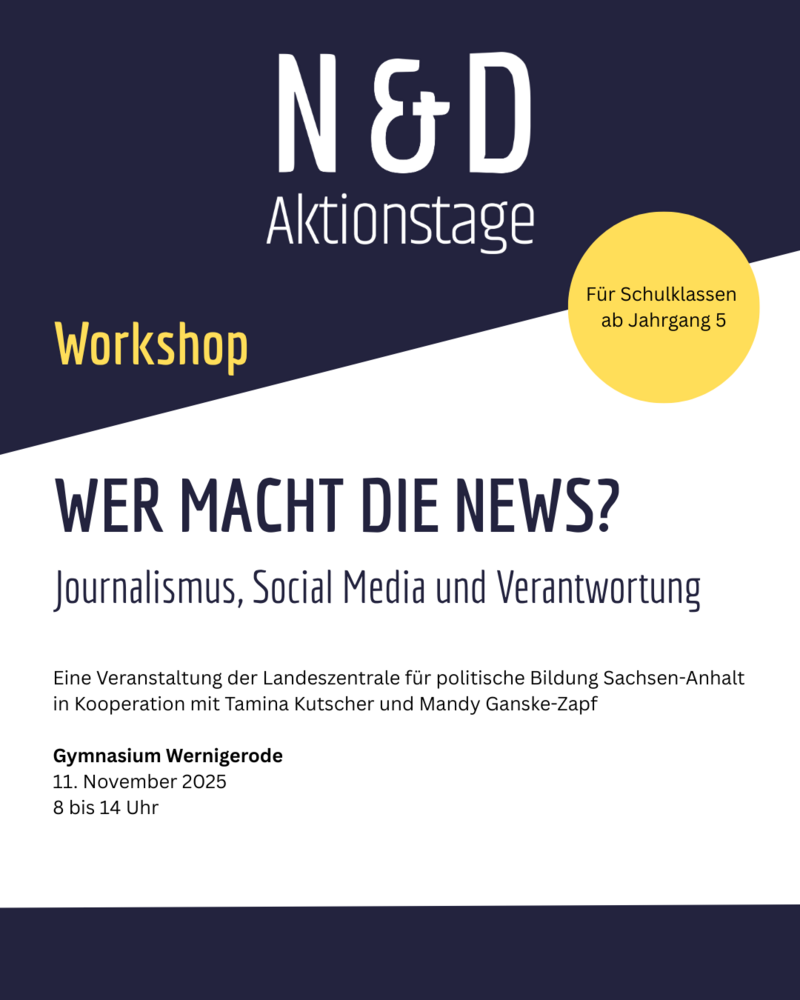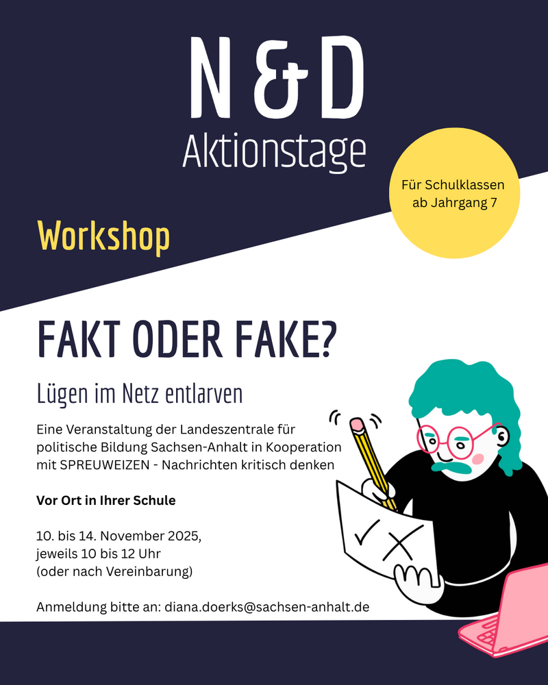 Eine Veranstaltung der Landeszentrale für politische Bildung Sachsen-Anhalt in Zusammenarbeit mit dem Bildungsprojekt SPREUWEIZEN - Nachrichten kritisch denken